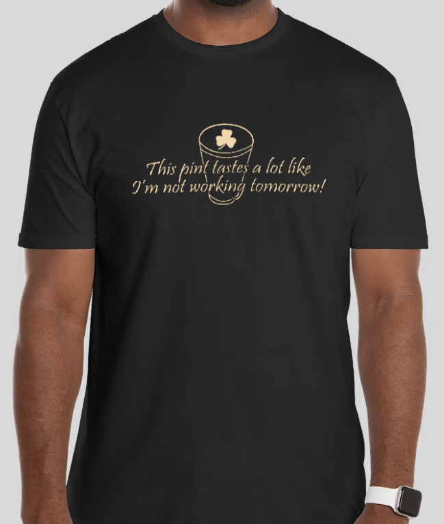 This pint tastes like I'm not going to work tomorrow! This T-shirt is perfect to wear while enjoying your favorite pint....or two!
